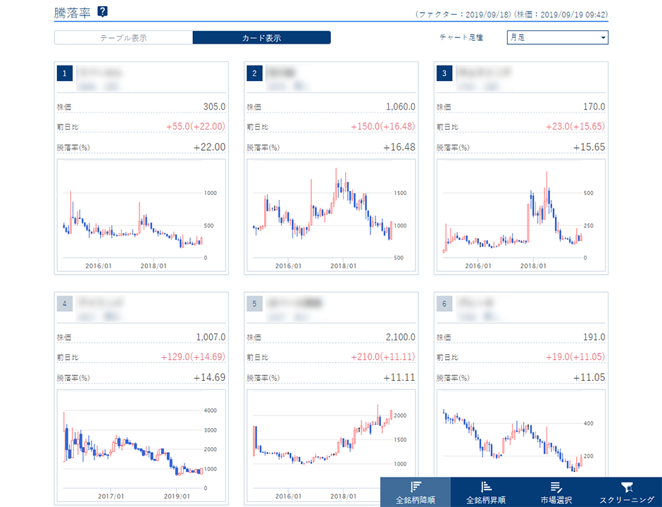 Webサイト内に表示する画像チャートや多彩な分析が可能な高機能チャートなど、用途に応じて様々な形式で提供が可能です。実装機能は、想定ユーザー層によって初心者からプロの投資家向けまで、カスタマイズも柔軟に対応します。